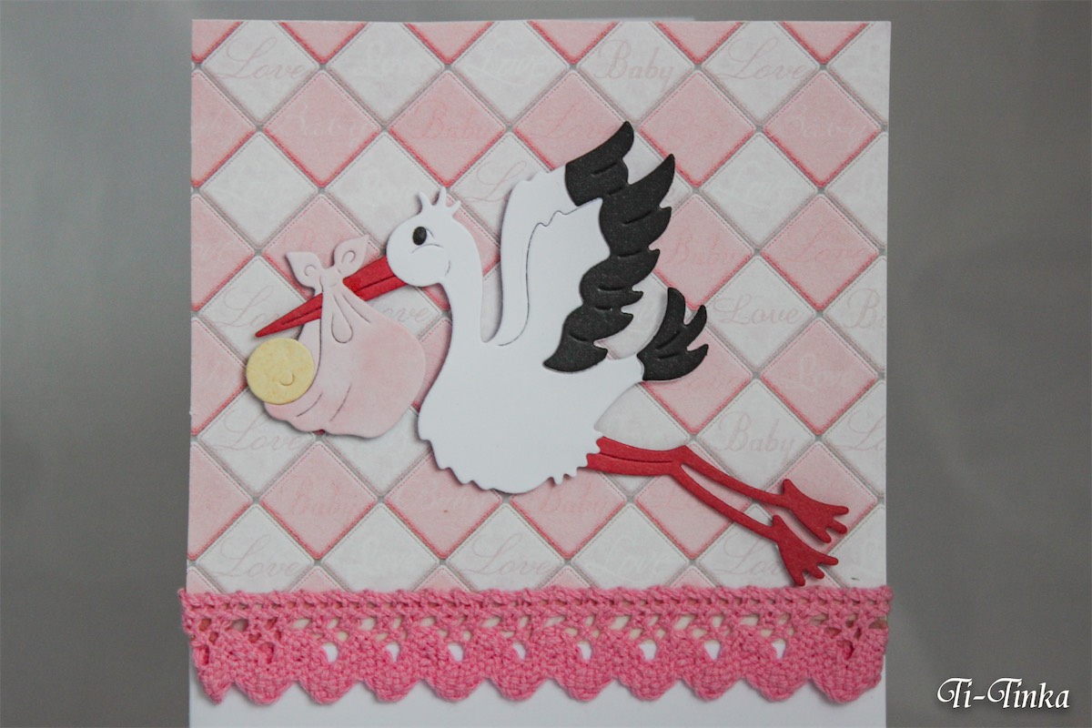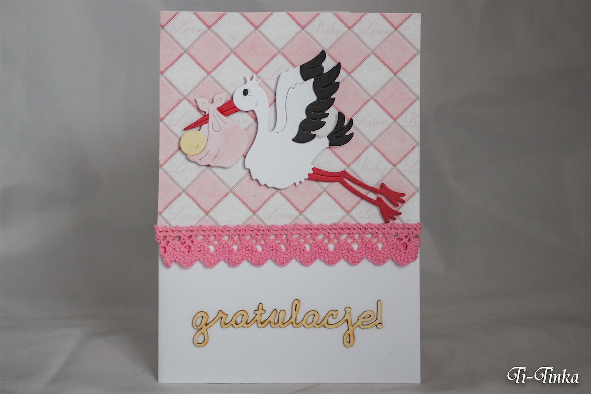 Ręcznie wykonana kartka gratulacyjna z okazji narodzin dziewczynki