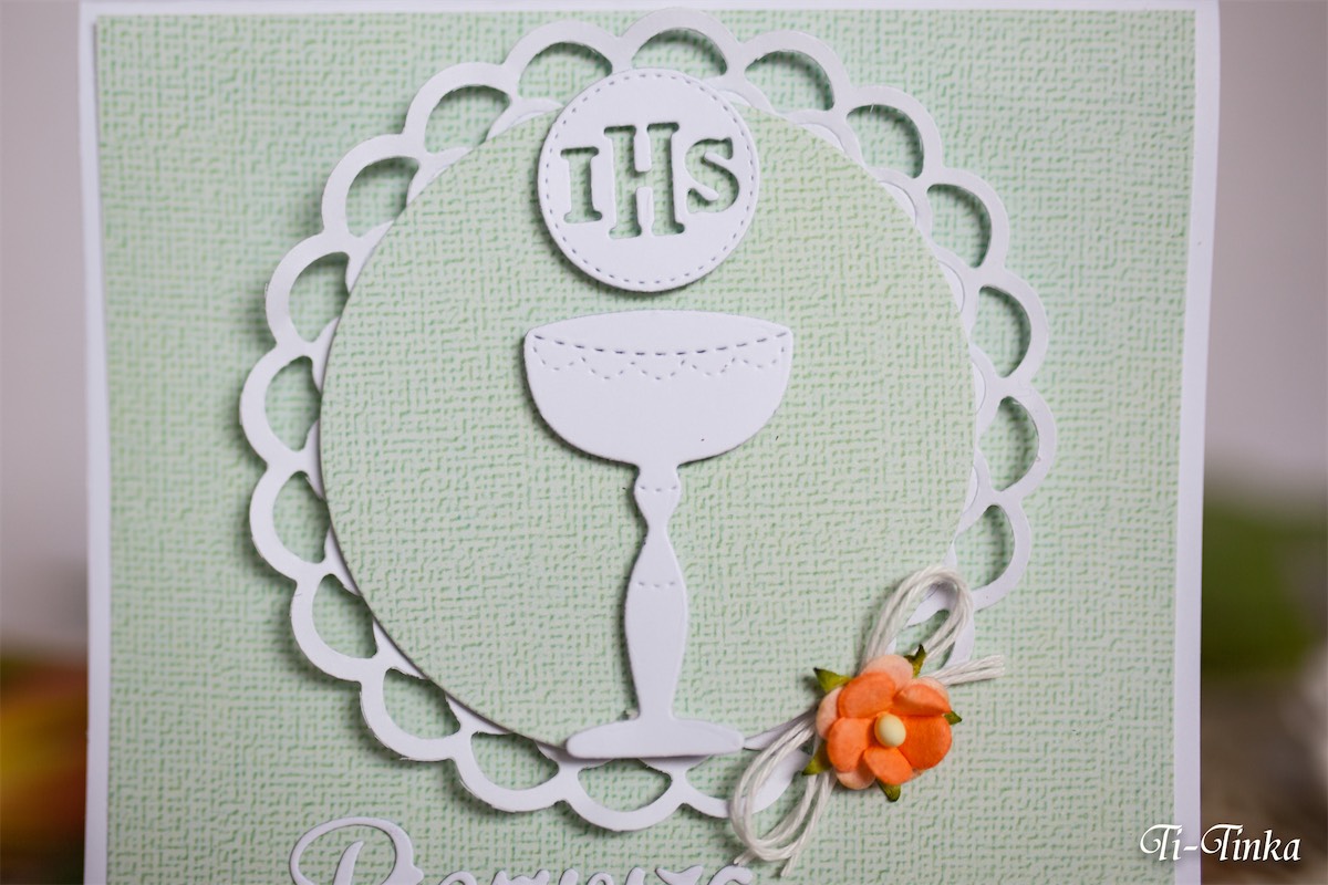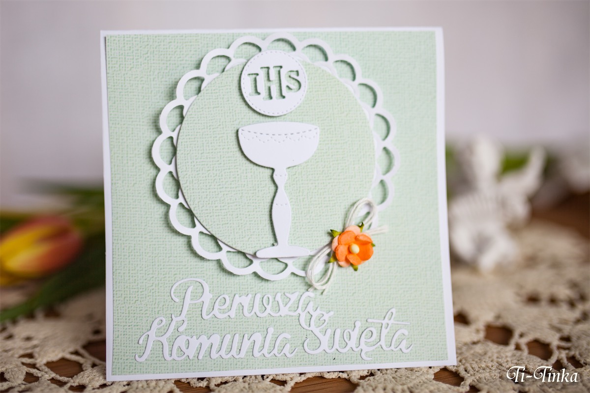 Ręcznie wykonana kartka na Pierwszą Komunię Świętą.