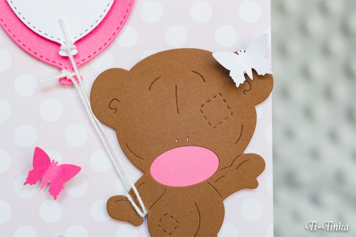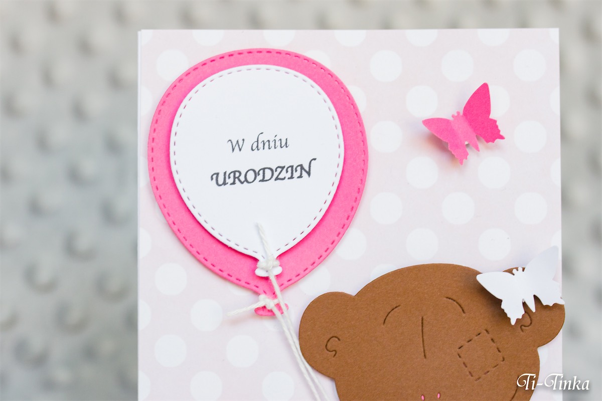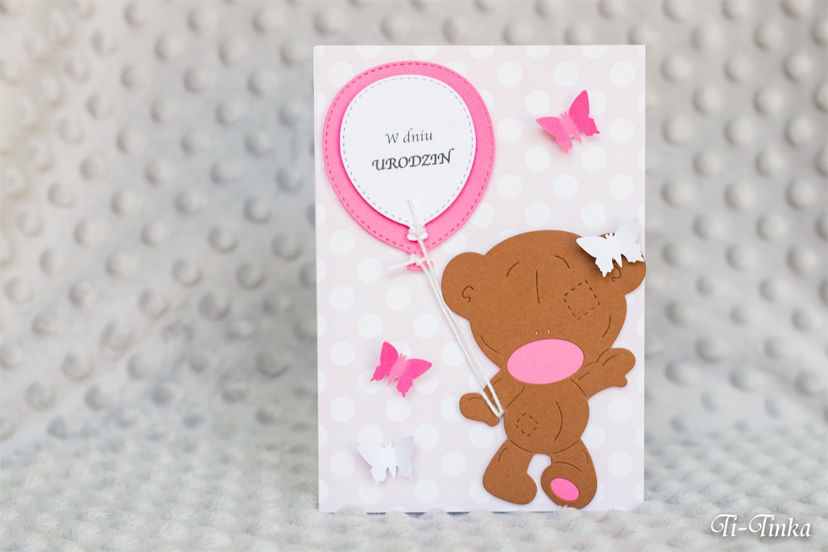 Miś z balonami – kartka urodzinowa dla dziewczynki